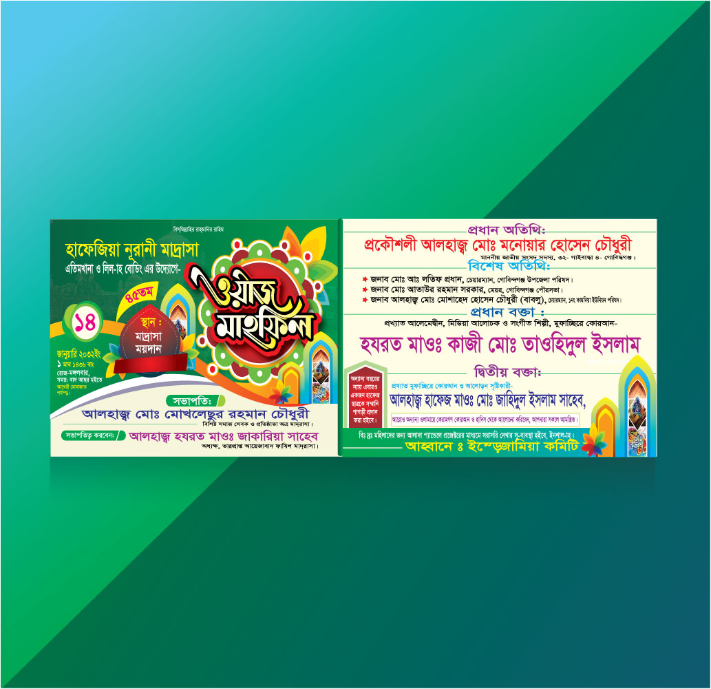 Bengali Waz Mahfil Event Poster Design Template | বাংলা ওয়াজ মাহফিল পোস্টার ডিজাইন টেমপ্লেট